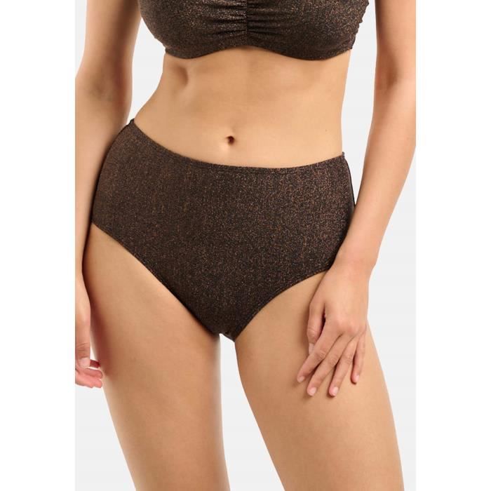 Envie d'une silhouette sculptée sans compromis sur le style ? La culotte de bain taille haute Sans Complexe Speekaboo est faite pour vous ! Conçue spécialement pour les femmes aux formes généreuses, cette culotte offre une couverture élevée et un effet galbant grâce aux fronces latérales. Le liseré doré ajoute une touche de sophistication au coloris noir intemporel. La microfibre tonique renforcée à l'avant affine délicatement la silhouette sans compression désagréable. Fabriquée en polyamide recyclé avec doublure en polyester, cette pièce allie élégance et responsabilité environnementale. Certifié Oeko-Tex Standard 100, le tissu est sans substances nocives pour la peau et l'environnement. Composition : 74% polyamide, 26% élasthanne. Associée au haut de la même collection, vous obtenez un maillot ultra-féminin qui vous mettra en valeur sur la plage ou au bord de la piscine. Entretien facile : rinçage à l'eau claire après utilisation, lavage main à l'ombre. Redécouvrez le plaisir de porter un maillot de bain qui vous correspond vraiment !